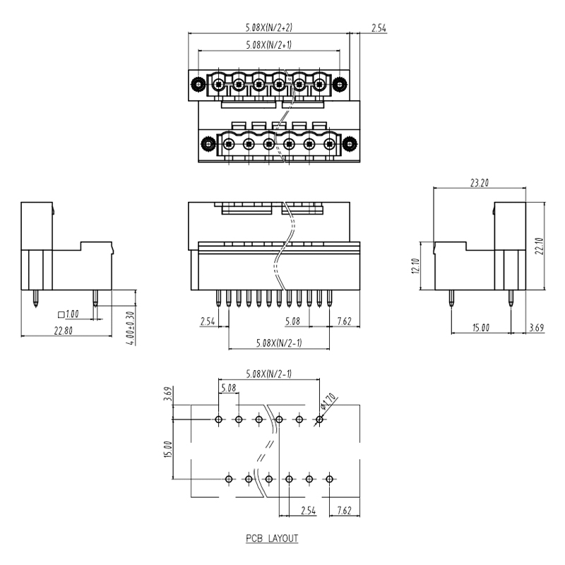 間距:5.08mm, 額定電壓:300V(cULus),320V(TUV), 額定電流:15A(cULus),10A(TUV), 線數(shù):4P-48P