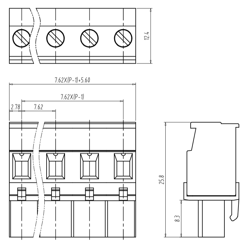 間距:7.62mm, 額定電壓:300V(cULus),400V(TUV), 額定電流:15A(cULus),18A(TUV) , 適用線經(jīng):28-12AWG,1.0-2.5mm2, 線數(shù):2-24P