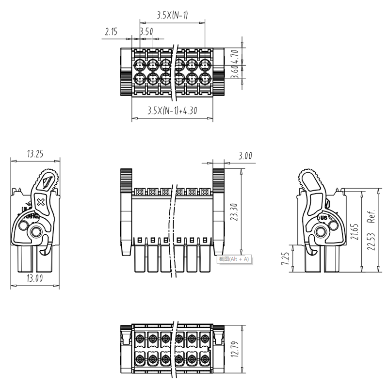 間距:3.5mm, 額定電壓:300V(cULus),250V(TUV), 額定電流:8A(cULus),9.5A(TUV), 適用線經(jīng):26-16AWG, 0.2-1.5mm2, 線數(shù):4P-48P