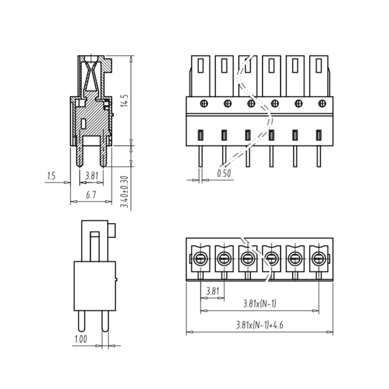 間距:3.81mm, 額定電壓:300V(cULus),250V(TUV), 額定電流:8A(cULus),7A(TUV), 線數(shù):2-24P