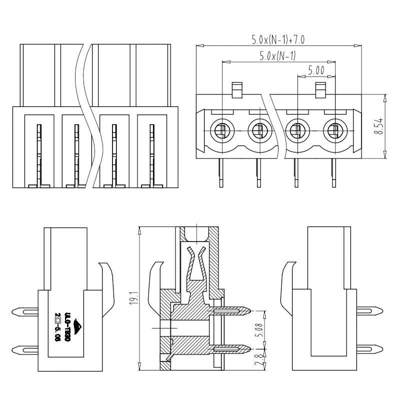 間距:5.0mm, 額定電壓:300V(cULus),320V(TUV), 額定電流:15A(cULus),20A(TUV), 線數(shù):2-24P