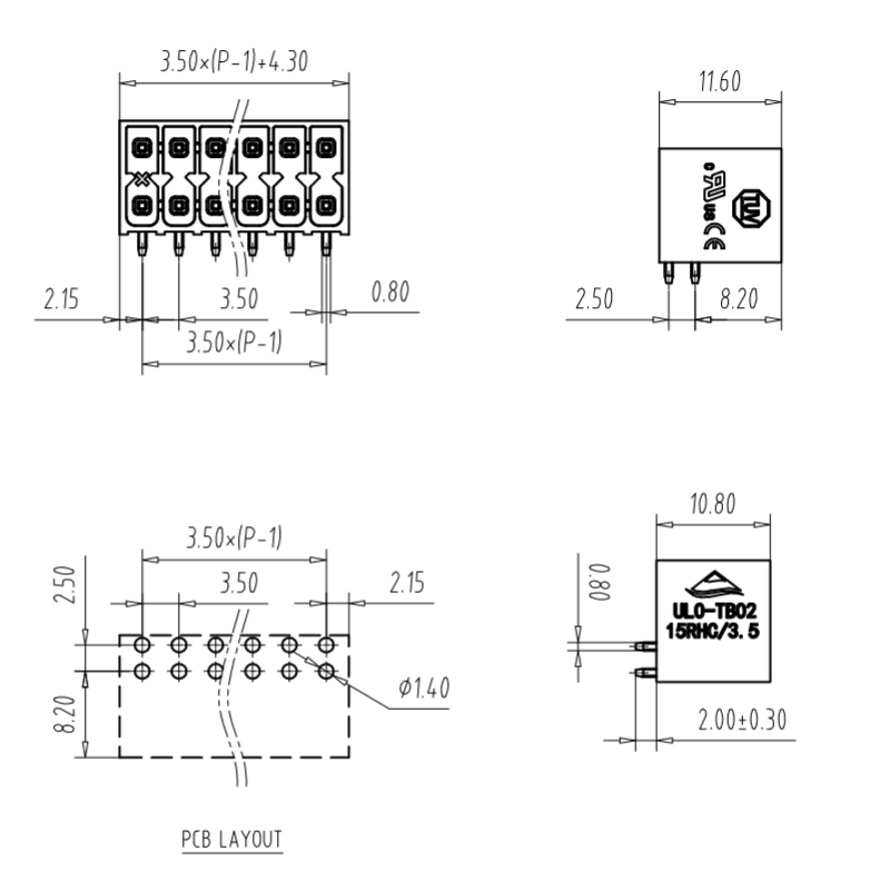 間距:3.5mm, 額定電壓:300V(cULus),250V(TUV), 額定電流:8A(cULus),8A(TUV), 線數(shù):4P-48P