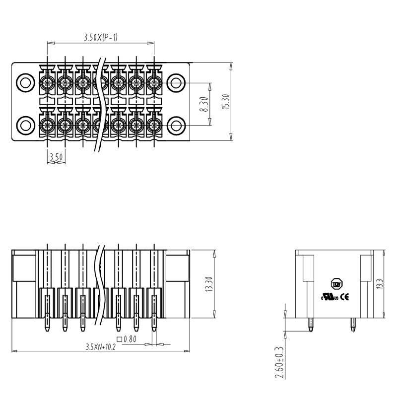間距:3.5mm, 額定電壓:300V(cULus),160V(TUV), 額定電流:8A(cULus),8A(TUV), 線數(shù):4P-48P
