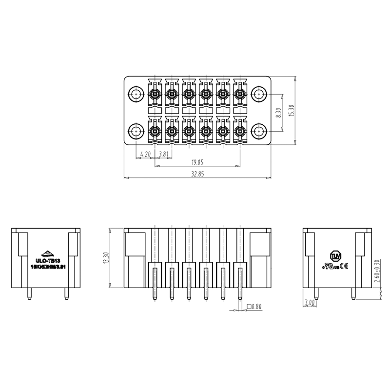 間距:3.81mm, 額定電壓:300V(cULus),160V(TUV), 額定電流:8A(cULus),8A(TUV), 線數(shù):4P-48P