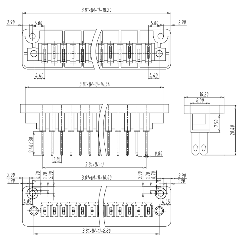 間距:3.81mm, 額定電壓:300V(cULus),250V(TUV), 額定電流:8A(cULus),7A(TUV), 線數(shù):2-24P