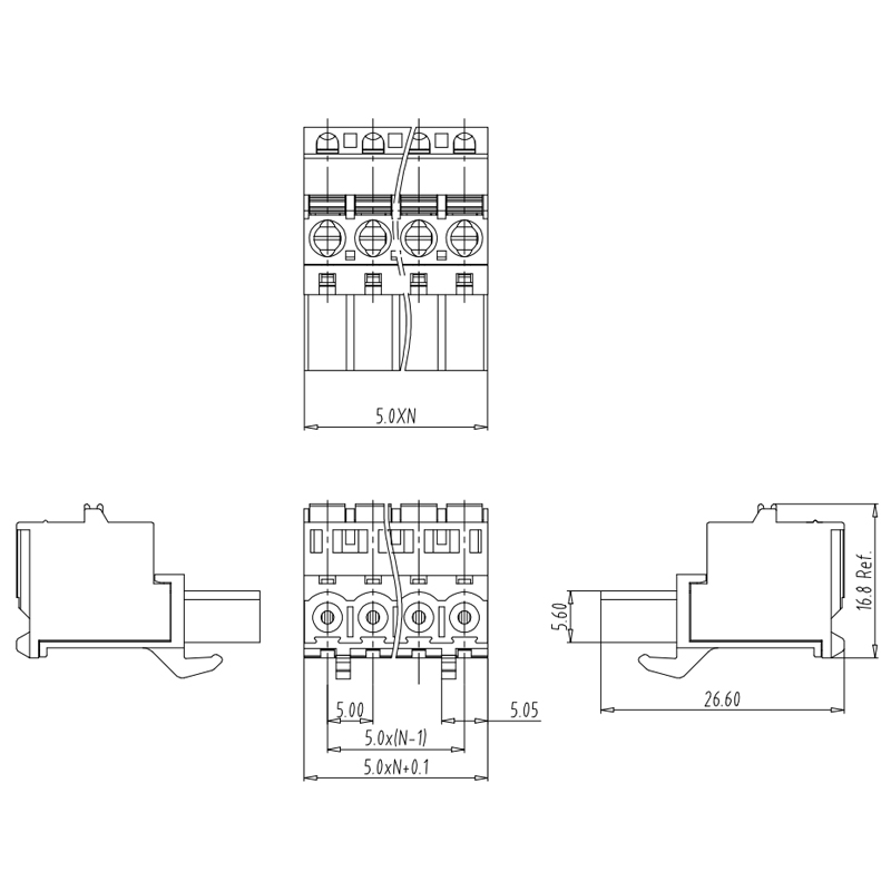 間距:5.0mm, 額定電壓:300V(cULus),320V(TUV), 額定電流:10A(cULus),20A(TUV), 適用線經(jīng):26-12AWG, 0.2-2.5mm2, 線數(shù):2-24P