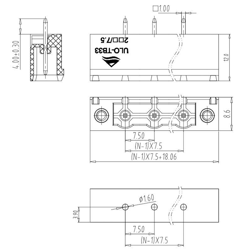 間距:7.5mm, 額定電壓:300V(cULus),400V(TUV), 額定電流:15A(cULus),20A(TUV), 線數(shù):2-24P