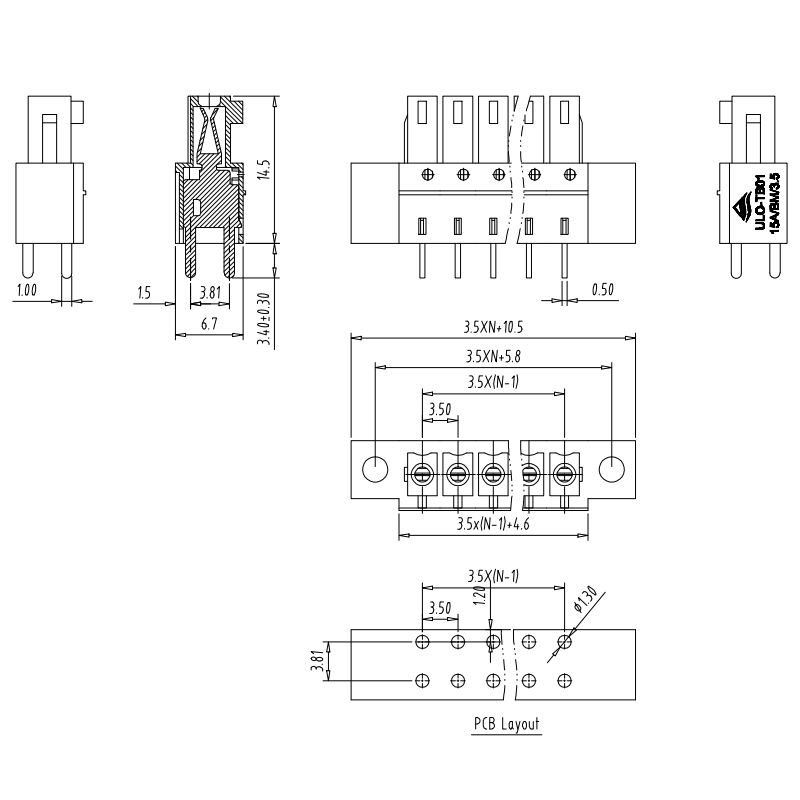 間距:3.5mm, 額定電壓:300V(cULus),250V(TUV), 額定電流:8A(cULus),7A(TUV), 線數(shù):2-24P
