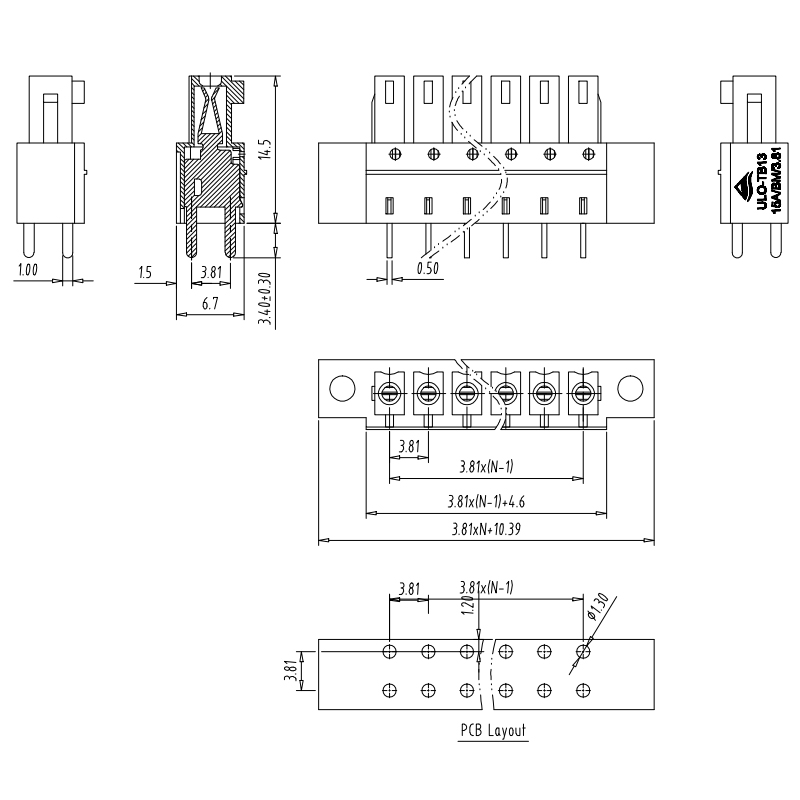 間距:3.81mm, 額定電壓:300V(cULus),250V(TUV), 額定電流:8A(cULus),7A(TUV), 線數(shù):2-24P