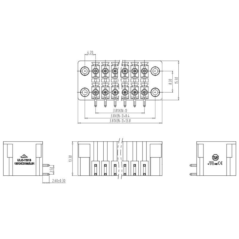 間距:3.81mm, 額定電壓:300V(cULus),160V(TUV), 額定電流:8A(cULus),8A(TUV), 線數(shù):4P-48P