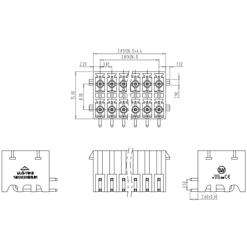 間距:3.81mm, 額定電壓:300V(cULus),160V(TUV), 額定電流:8A(cULus),8A(TUV), 線數(shù):4P-48P
