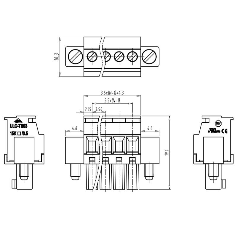 間距:3.5mm, 額定電壓:300V(cULus) ,250V(TUV), 額定電流:8A(cULus) ,7A(TUV), 適用線經(jīng):28-16AWG, 0.5-1.5mm2, 線數(shù):2-24P