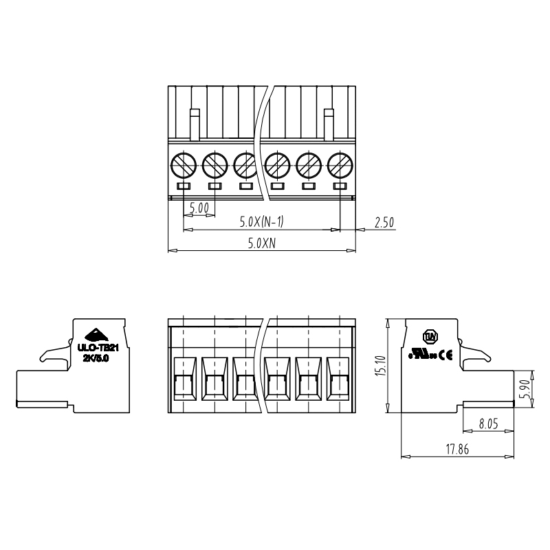 間距:5.0mm, 額定電壓:300V(cULus),320V(TUV), 額定電流:15A(cULus),20A(TUV) , 適用線經(jīng):28-12AWG,1.0-2.5mm2, 線數(shù):2-24P