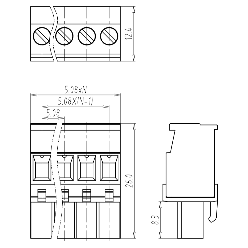 間距:5.08mm, 額定電壓:300V(cULus),320V(TUV), 額定電流:15A(cULus),18A(TUV) , 適用線經(jīng):28-12AWG,1.0-2.5mm2, 線數(shù):2-24P