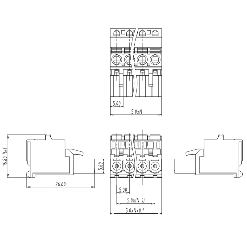 間距:5.0mm, 額定電壓:300V(cULus),320V(TUV), 額定電流:10A(cULus),20A(TUV), 適用線經(jīng):26-12AWG, 0.2-2.5mm2, 線數(shù):2-24P