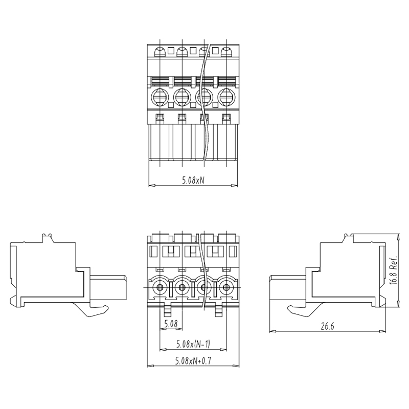 間距:5.08mm, 額定電壓:300V(cULus),320V(TUV), 額定電流:10A(cULus),20A(TUV), 適用線經(jīng):26-12AWG, 0.2-2.5mm2, 線數(shù):2-24P