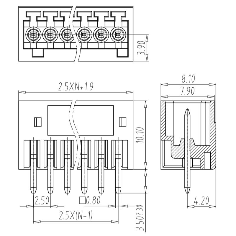 間距:2.5mm, 額定電壓:150V(cULus),250V(TUV), 額定電流:4A(cULus),5A(TUV), 線數(shù):2-24P