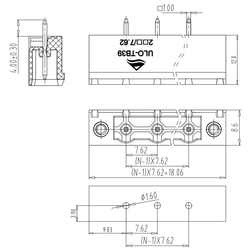 間距:7.62mm, 額定電壓:300V(cULus),400V(TUV), 額定電流:15A(cULus),20A(TUV), 線數(shù):2-24P