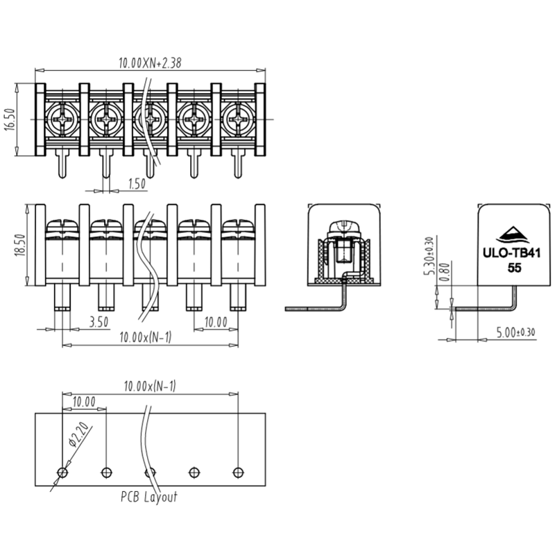 間距:10.0mm, 額定電壓:300V(cULus),320V(TUV), 額定電流:20A(cULus),32A(TUV), 適用線經(jīng):22-12AWG,0.5-4.0mm2, 線數(shù):2-24P