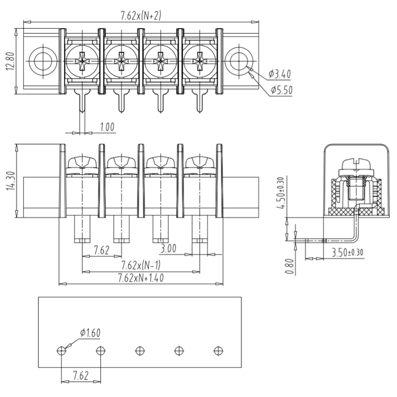 間距:7.62mm, 額定電壓:300V(cULus),300V(TUV), 額定電流:15A(cULus),24A(TUV), 適用線經(jīng):22-14AWG, 線數(shù):2-24P