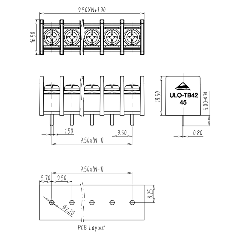 間距:9.5mm, 額定電壓:300V(cULus),250V(TUV), 額定電流:20A(cULus),24A(TUV), 適用線經(jīng):22-12AWG,0.5-4.0mm2, 線數(shù):2-24P