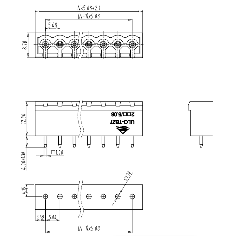 間距:5.08mm, 額定電壓:300V(cULus),320V(TUV), 額定電流:15A(cULus),20A(TUV), 線數(shù):2-24P