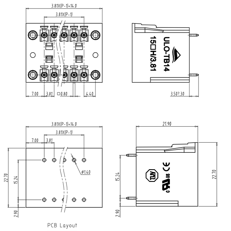 間距:3.81mm,額定電壓:300V(cULus),250V(TUV), 額定電流:8A(cULus),7A(TUV), 線數(shù):4P-48P